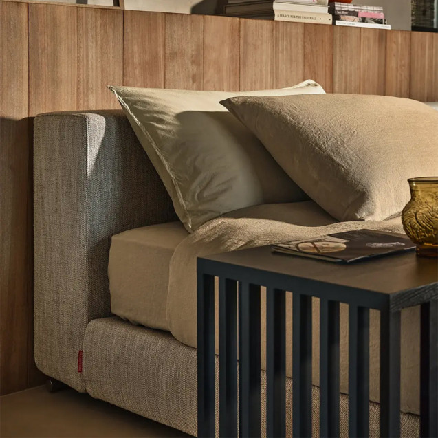 and base with storage compartment. The Groundpiece Slim bed can be paired