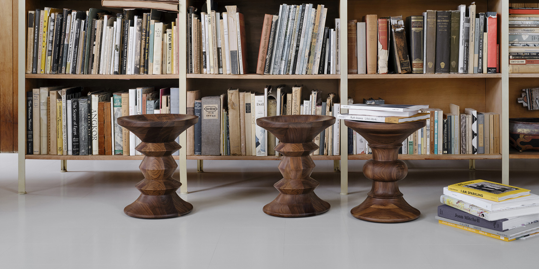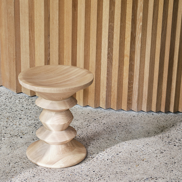 Originally designed by Charles and Ray Eames as furnishings for three lobbies in New York City's Rockefeller Center, the Stools make attractive companion pieces for many lounge chairs and sofas. Crafted from solid turned wood, the Stools can also be used as occasional tables.